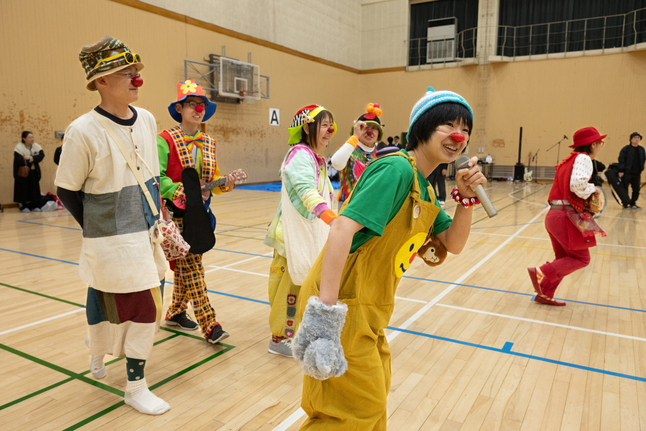 ピエロのパフォーマンスとともに、子どもたちとの双方向の交流をしてくれました。