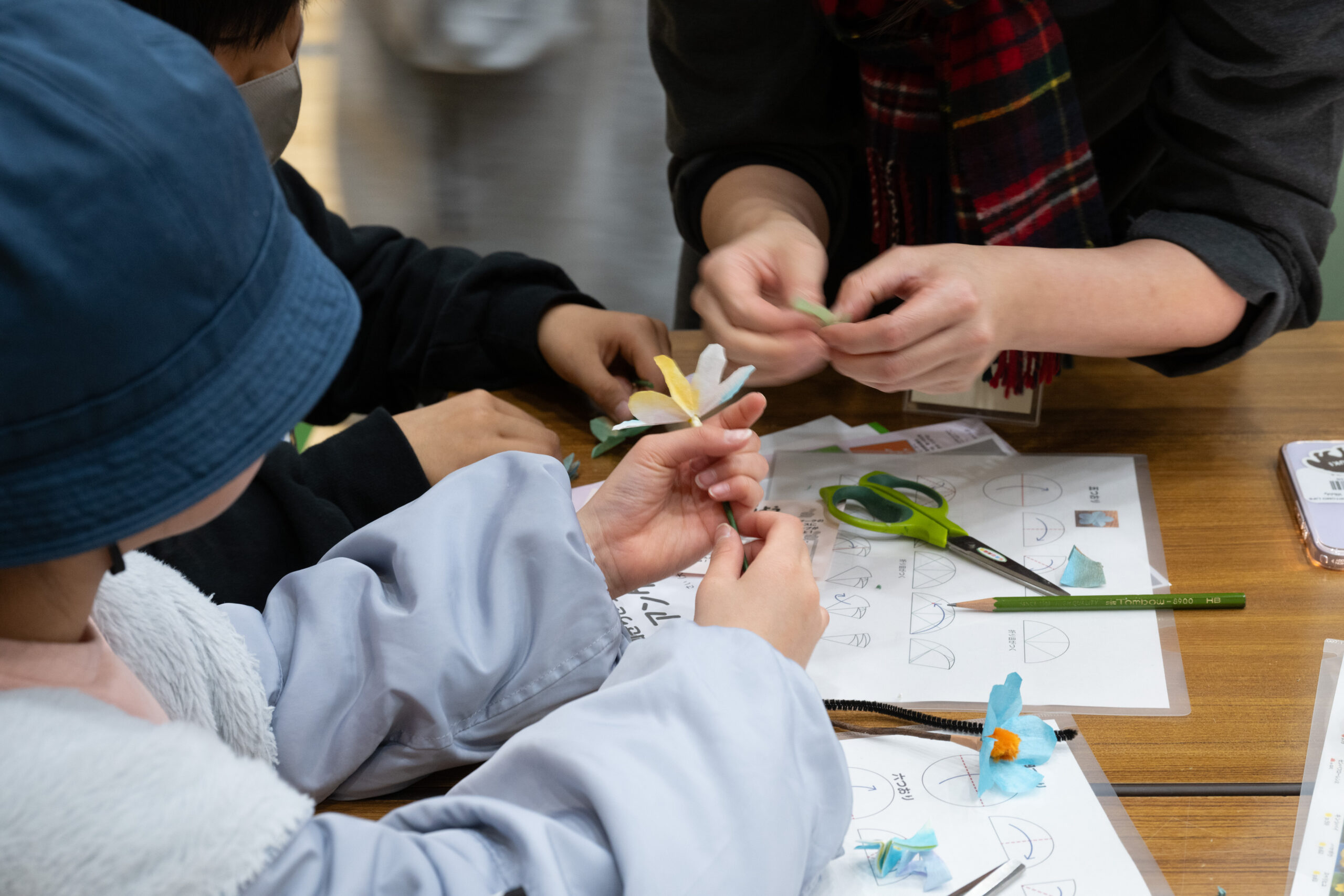 初参加の世田谷区立美術館…みんなでお花を作りました。